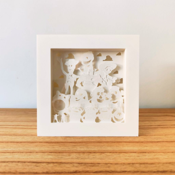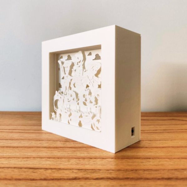 - INTERIOR realizado con la técnica PAPERCUT (capas caladas de papel de alto gramaje BLANCO superpuestas generando un efecto 3D)